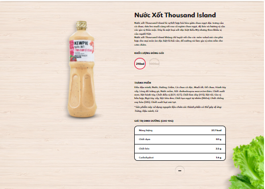 Nước xốt Thousand Island không chỉ tuyệt vời cho các món salad mà còn phù hợp cho mọi món ăn đặc biệt là hải sản, đồ nướng và làm gia vị nêm nếm cho cơm chiên.