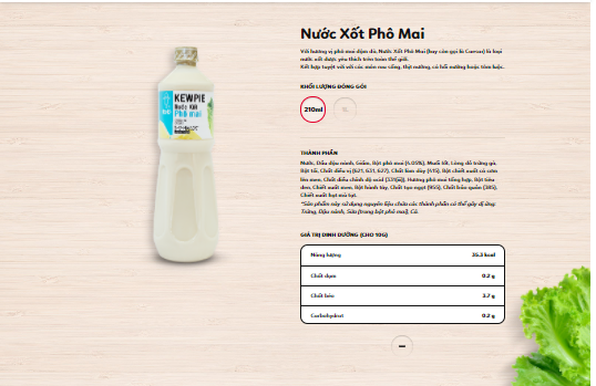 Kewpie Việt Nam cung cấp cho người tiêu dùng các loại nước xốt và mayonnaise với nhiều hương vị diệu kỳ mang đến cho mọi người cảm giác ngon miệng, yêu thích hơn trong mọi bữa ăn. Cùng với sự đa dạng về quy cách và mẫu mã giúp bạn dễ dàng lựa chọn sản phẩm phù hợp cho mình.