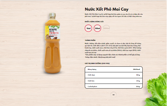 Kewpie Việt Nam cung cấp cho người tiêu dùng các loại nước xốt và mayonnaise với nhiều hương vị diệu kỳ mang đến cho mọi người cảm giác ngon miệng, yêu thích hơn trong mọi bữa ăn. Cùng với sự đa dạng về quy cách và mẫu mã giúp bạn dễ dàng lựa chọn sản phẩm phù hợp cho mình.