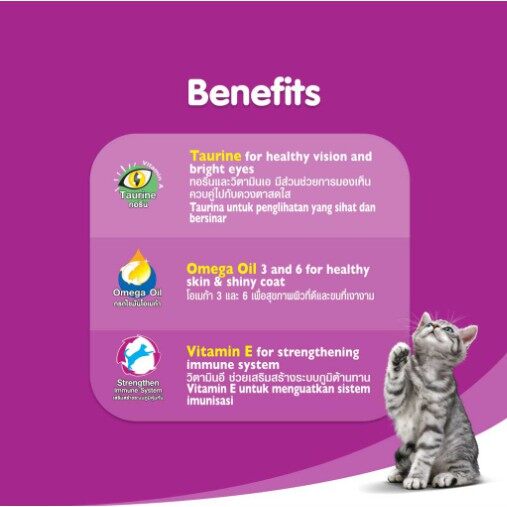 Mèo là loài động vật có bản tính săn mồi nhanh nhạy nên cơ thể chúng rất cần được chú ý bổ sung các chất dinh dưỡng cần thiết để luôn lanh lợi và khỏe mạnh. Sản phẩm sốt cho mèo lớn Whiskas sẽ mang đến cho mèo cưng của bạn những lợi ích sau: